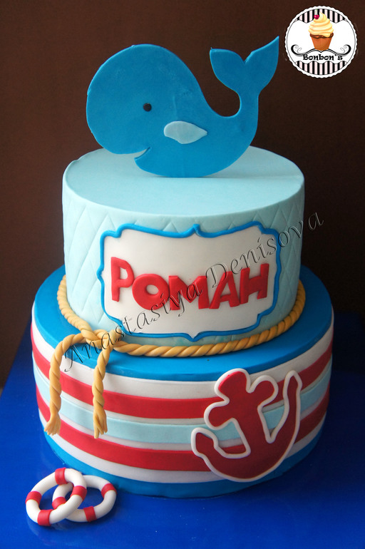 Ну и последний на сегодня) Морской, вес 5,2 кг. Низ: Ферерро Верх: Ванильный бисквит,клубничный мусс,бананы)