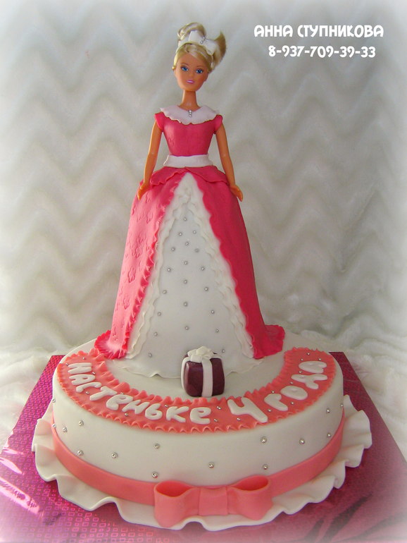Торты детскиеВстретилась мне оооочень приятная женщина! Безумно нравится работать с такими позитивными людьми и даже возраст не имеет значения(женщине 51 год). Тортик она заказала для внученьки, которая приехала с родителями после долгого отсутствия. Все было на мое усмотрение. Тортик делался по примеру уже существующего моего торта с куклой. Единственное, ей хотелось белого цвета и розового)