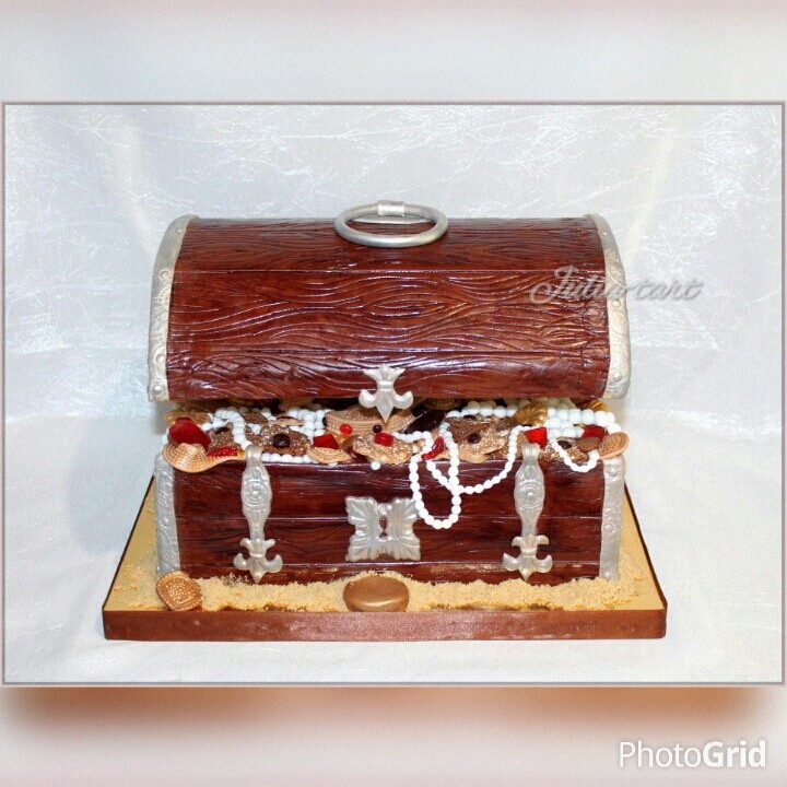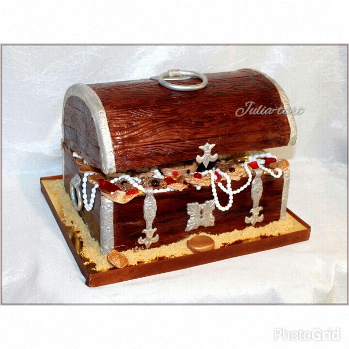 Торты тематическиеИ вот у меня второй сундук. Опять большой. Правда с перевесом отработала, в итоге 10 кг общий вес. В составе две начинки : медовик, так полюбившийся заказчикам и ванильный шифоновый бисквит , крем с маскарпоне и малина.