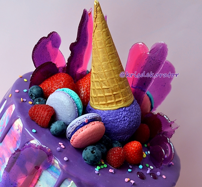 А рожок на что одет, что это за сиреневый шар? И еще вопросик - это карамель или изомальт?