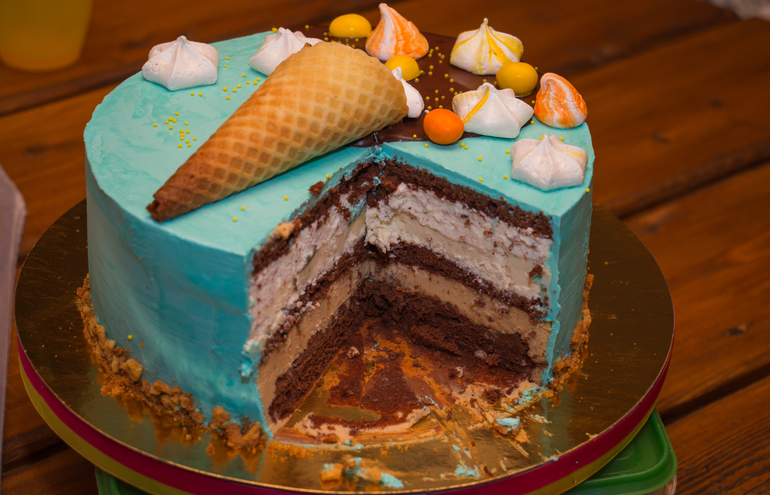 Шокобисквит, ганаш, карамельный мусс, шантильи, ганаш из белого шоколада, воздушный рис. Вес 1.9 кг.