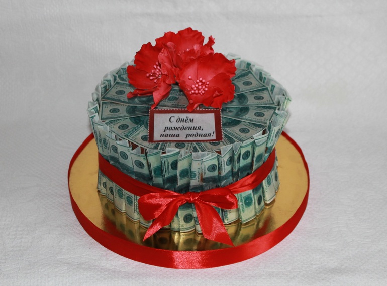 Наверное бы не только обрадовалась (торт был для женщины) но и оказалась бы на 7 небе от счастья от такого количества денег
