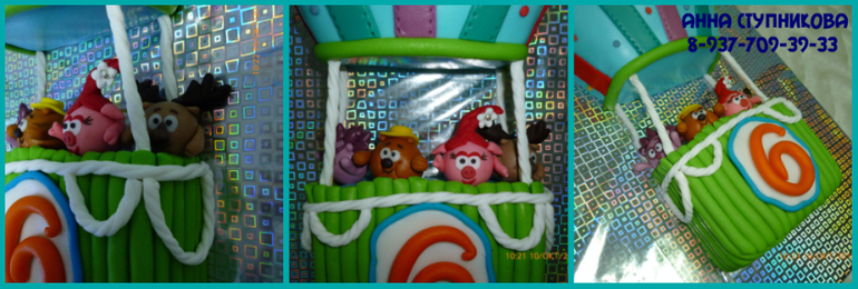 Торты детскиеЗаказали мне воздушный шар со смешариками. Ох уж эти малыши-кругляши)) В общем торт внеплановый, так сказать, потому что на сегодня у меня имелся заказ(о нем расскажу позже, так как он еще на этапе сборки), ну да ладно, взялась, очень просили. Поэтому спала снова мало, снова подъем в 4 утра и вперед....))