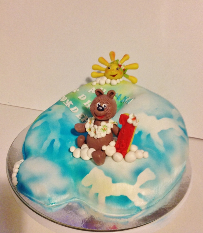 КритикаЗадача была объединить в торте медведя любого с единичкой и солнце, получилось то что получилось, сложный для меня мишка оказался :(
