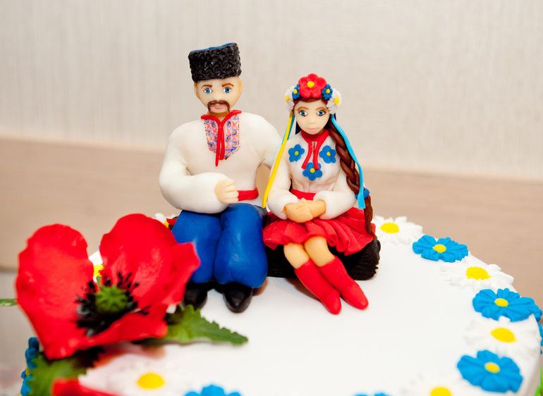 Небольшой свадебный тортик на свадьбу в украинском стиле.