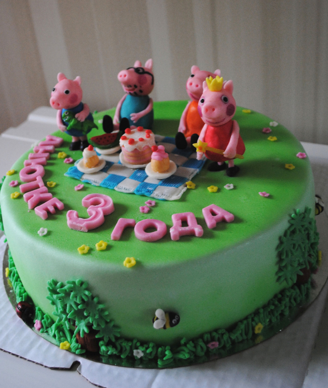 Торты детскиеДелала Пеппу и ко первый раз. Главная дилемма при работе над тортом заключалась в том, где же у Пеппы делать глаза - по центру или на боку. И конечно же был страх, что ребенок в итоге Пеппу не признает. : )