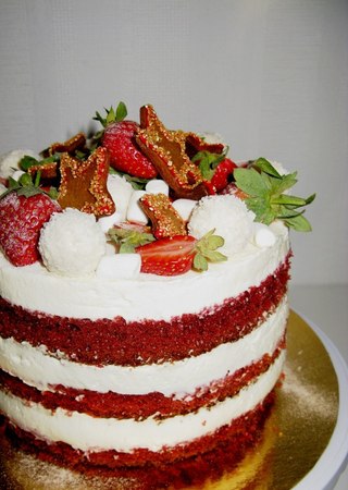 Очень хочется красный бархат без мастики на 2-2,5кг сверху или фрукты или что-нибудь новогоднее.