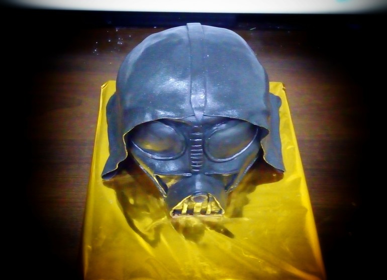 получилось не плохо, ну, судя по данным, не очень информативным, ракурсам. Единственное, если придираться, боковые края шлема у Дарта - не тряпка. поэтому должны быть толстенькими, а не висеть складками. ну, и если бы цвет подложки был черным (можно было и звездочек точками нарисовать, например), то смотрелся бы шлем куда гармоничнее