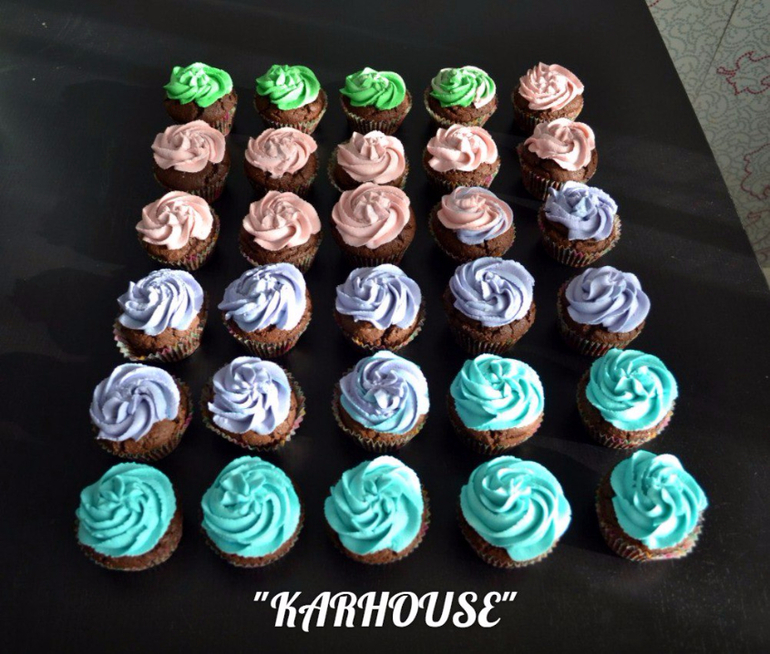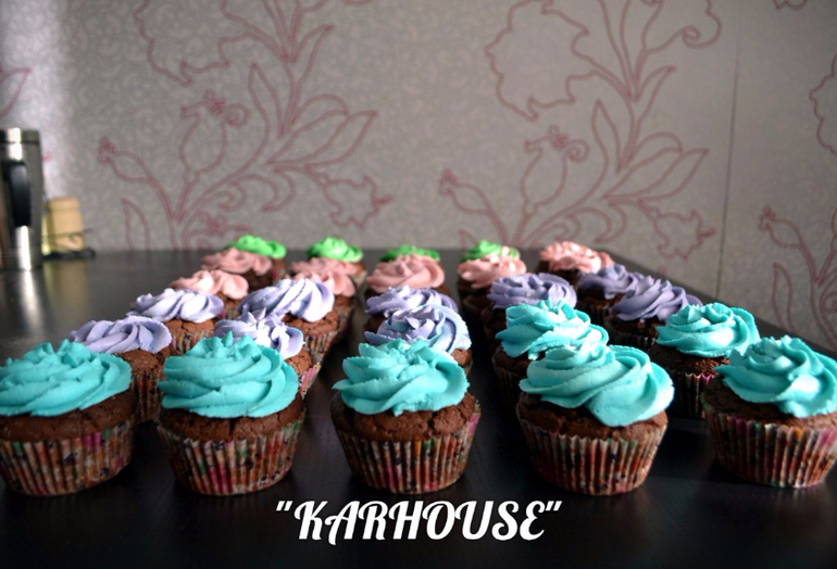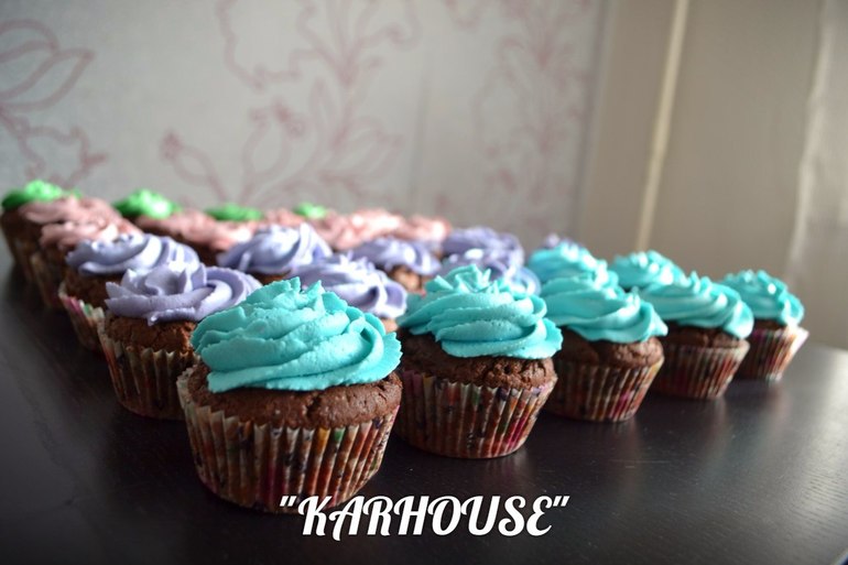 Капкейки и КейкпопсыШоколадный бисквит с шапочкой из крема на основе сливочного сыра, внутри 3 начинки - карамель, малиновый джем, и шоколадно-лимонный крем.