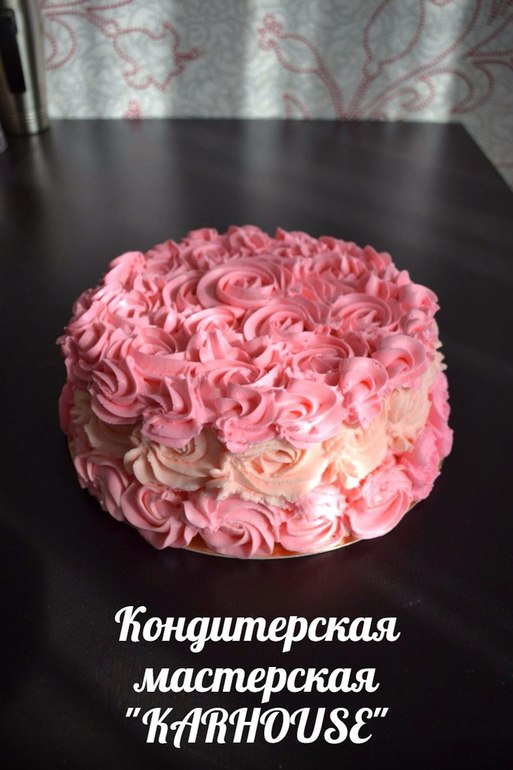 Получился 2 кг. Бисквит "королевы Виктории" с кремом на основе сметаны, бока украшены кремом на основе сливочного сыра, а верх украшен масляным кремом, так попросил заказчик.