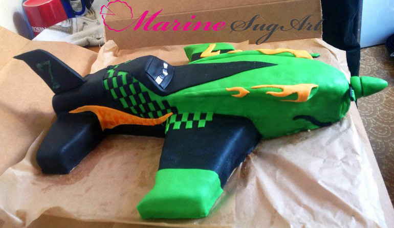 Тортик очень симпатичный. Отличный спойлер, сопла спереди (или как они там называются), пропеллер. Давно ваша супруга делает торты?