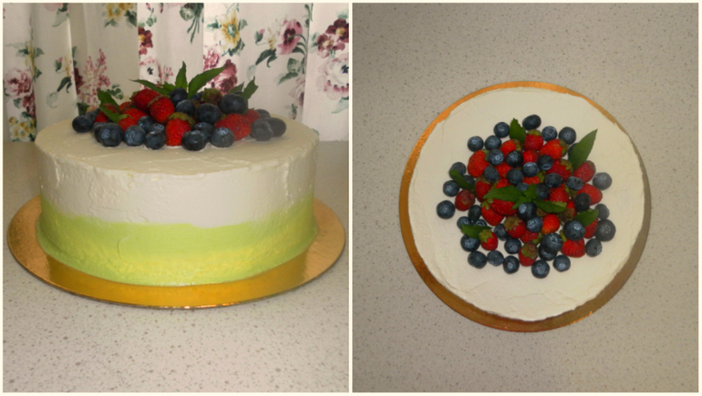 Второй тортик для сестры на 11 июня))) Отмечали дома с родителями) Летний муссовый торт с манго-бананом и огурцами и мятой))