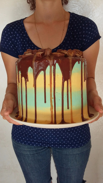 Шоколадный бисквит, крем чиз, домашняя вареная сгущенка с соленым арахисом, сверху швейцарская меренга на масле и ганаш из молочного шоколада) 2,1 кг