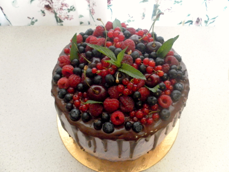 Просто так сделала тот же шоколадный бисквит с черносмородиновым шибустом.