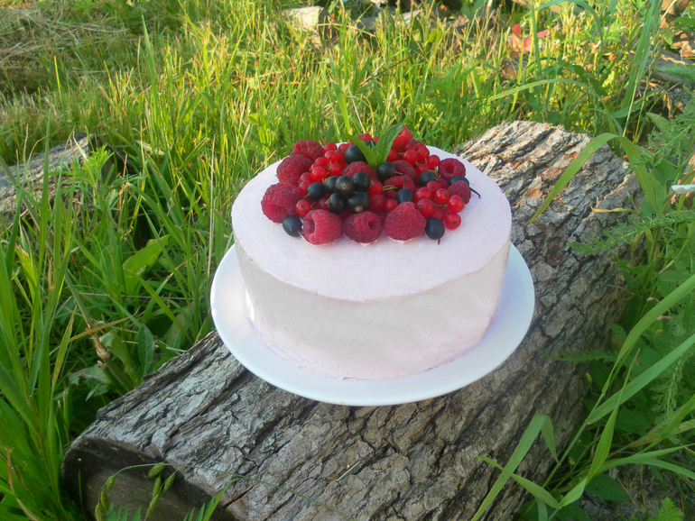 Миндальный бисквит, йогуртовый мусс с черной смородиной, крем чиз и швейцарская меренга на масле) 3 кг
