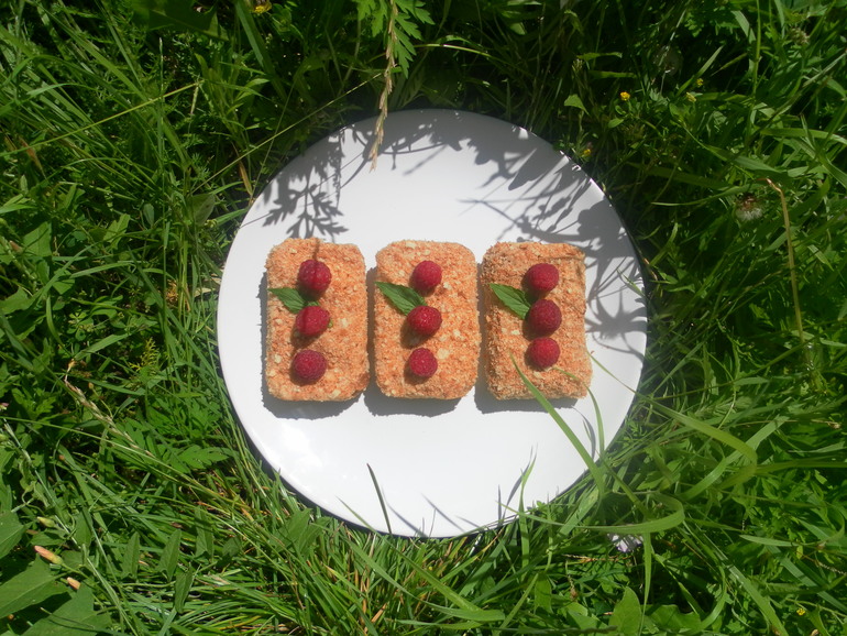 Миндальный бисквит и йогуртовый мусс с малиной