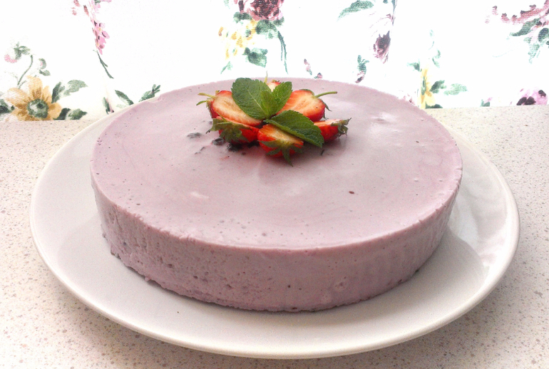Миндальный бисквит и йогуртовый мусс с черникой. Сверху швейцарская меренга на масле и ганаш из молочного шоколада) 3,3 кг
