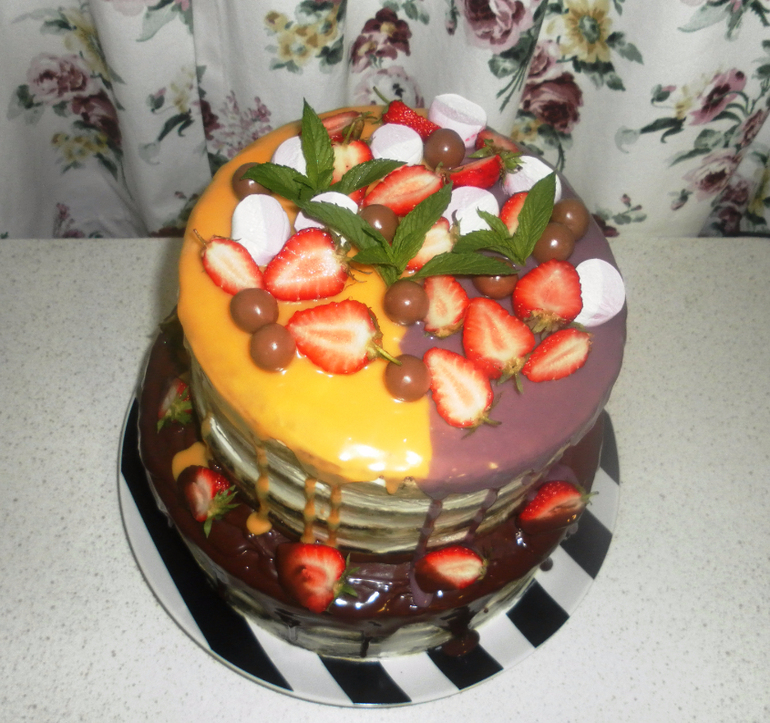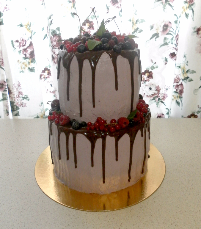 Этот тортик делала в подарок подруге на день рождение 4 июня) 5,3 кг Голый тортик) Она заказала нижний ярус шоколадный бисквит, верхний колибри с кусочками ананаса и бананом. Покрыт шоколадным ганашем) Банан красиво в выпечке получился)