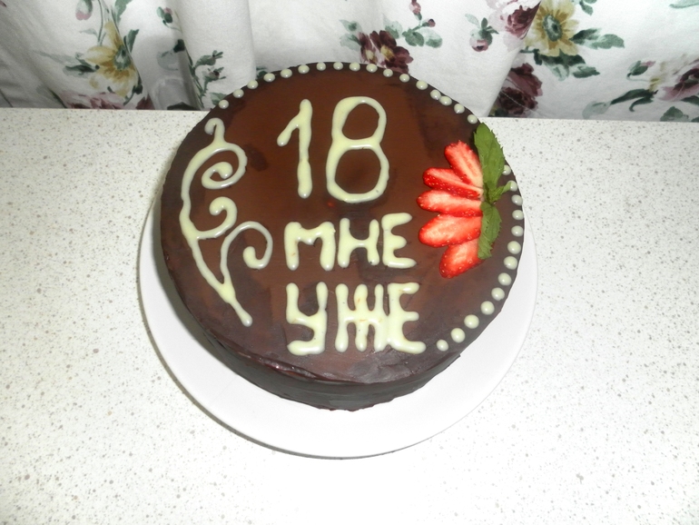 Этот для золовки на 8 июня, для домашних, отмечала она позже) 1 кг Первый раз делала птичье молоко) Получилось вкусно, но коржи жестковаты… Надо другие подобрать. Надпись кривая вся получилась...