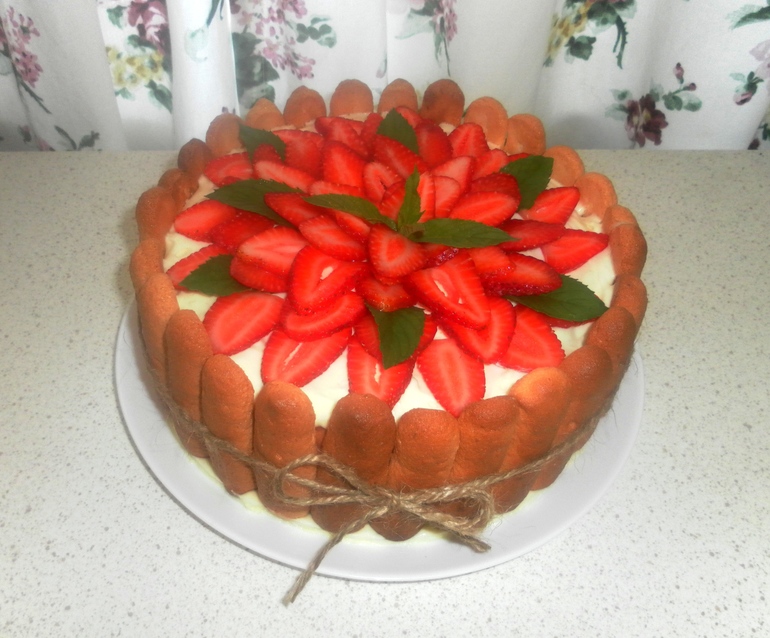А этот сделала впервые на заказ))) Тирамису клубничный) 1,5 кг Савоярди сама пекла)) Нам из остатков немного перепало. Ооочень вкусный получился)))