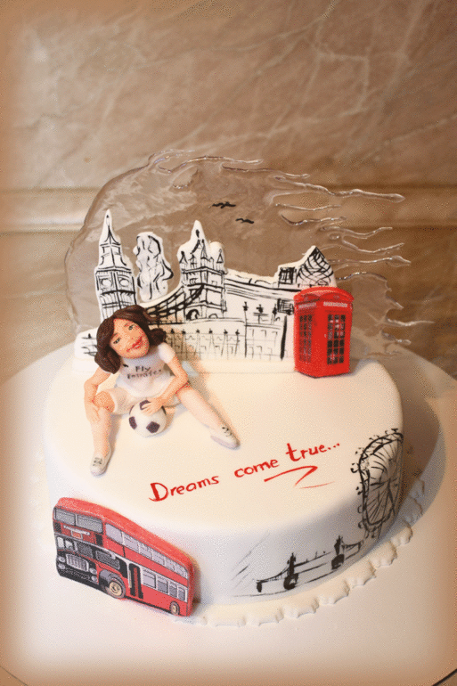 Торты детскиеТортик для корейской девочки, мечтающей поехать в Лондон и увлекающейся футболом)