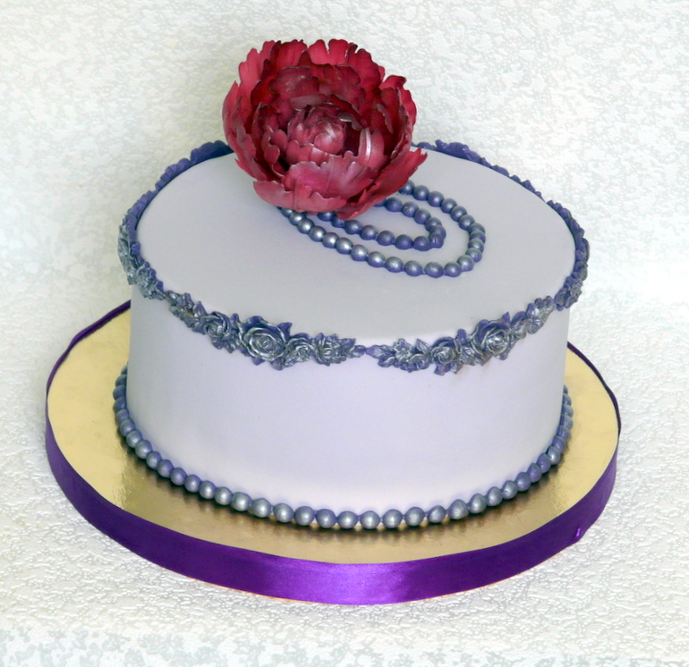 Торты для женщинСрочный заказ- хорошо, что у меня всегда есть немного готовых цветов. Планировала букет из роз+зелень, гортензия и фрезия. Покрасила из аэра, а когда обтянула торт , поняла, что цвета не сочетаются( торт холодноватый, а букет красно-оранжево-желтый), поэтому вместо букета только пион.