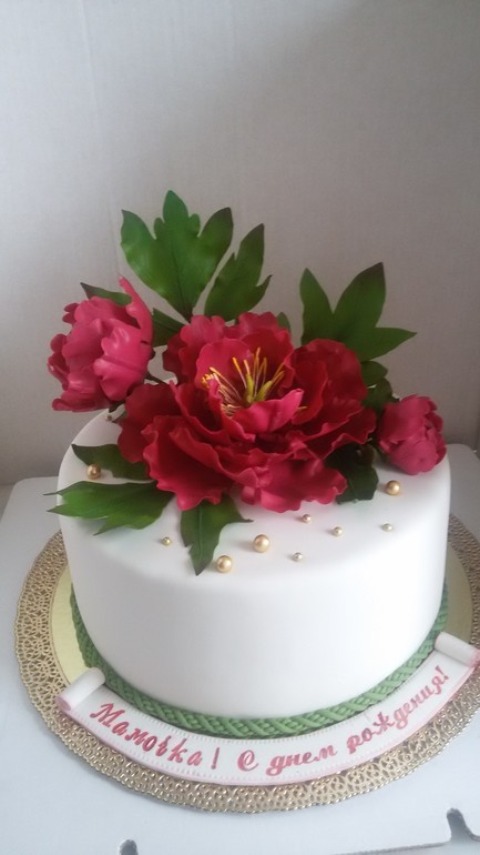 Торт с пионами для женщины на юбилей