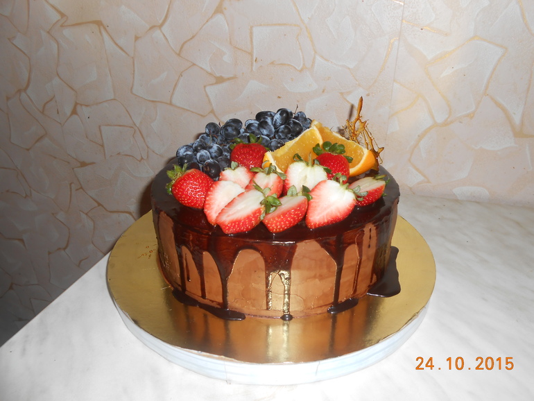 В продолжении поста про растаявшую в холодильнике карамель https://www.babyblog.ru/community/post/konditer/3238201#comm_155394607 покажу вам то,как тортик выглядел в итоге,украсила клубникой.