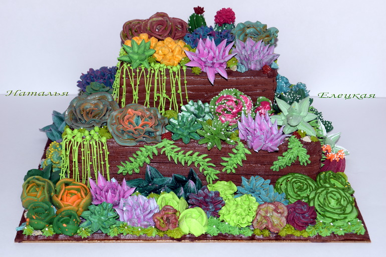 Торт весит 4,5 кг, если убрать украшения с подставки, он не будет казаться таким большим, но я намеренно сделала так, чтобы показать как можно больше суккулентов (которые смотрятся не хуже привычных роз, тюльпанов и лютиков)...