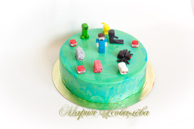 Муссовый торт с мастичными фигурками из игры Майнкрафт