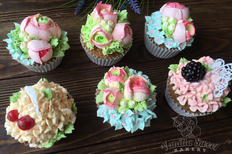 Авторские капкейки с цветами. Интересная история у этих капкейков, что аж их отведал Дмитрий Нагиев и команда спектакля "Кыся". Очень рада приятному знакомству.