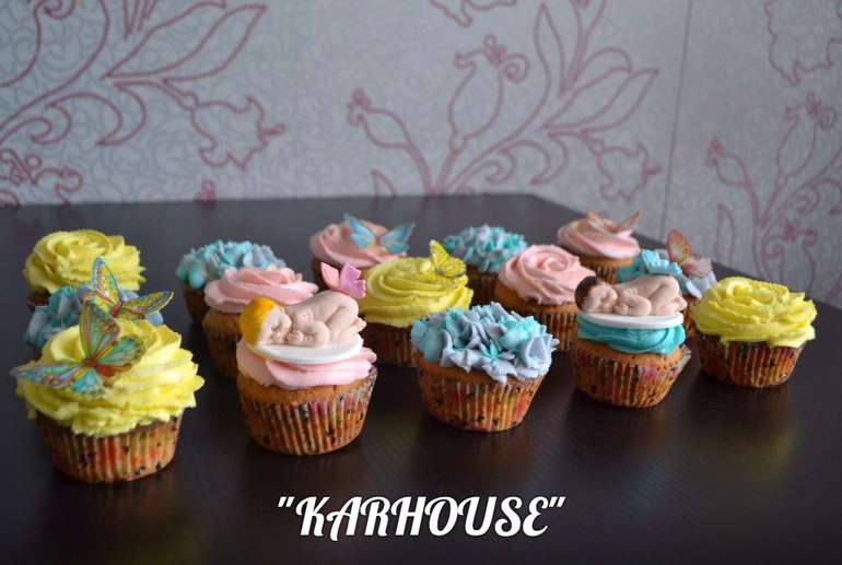 Капкейки и КейкпопсыВанильный бисквит, с шапочкой из крема на основе сливочного сыра.