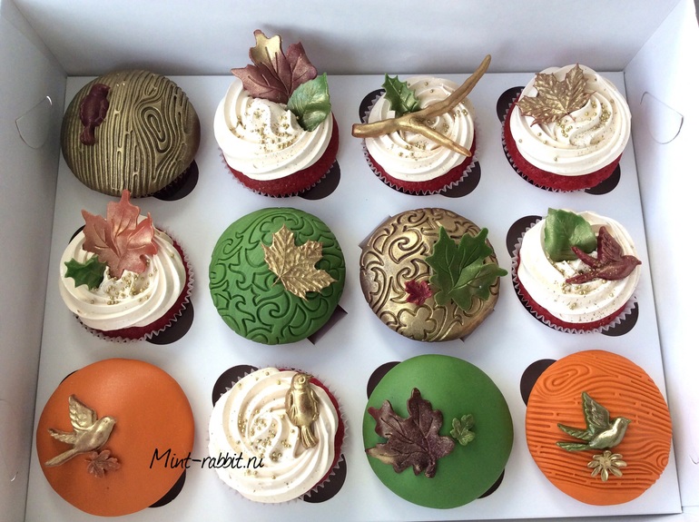 Бисквит красный бархат, внутри пломбирный крем, шапочки итальянская меренга и мастика