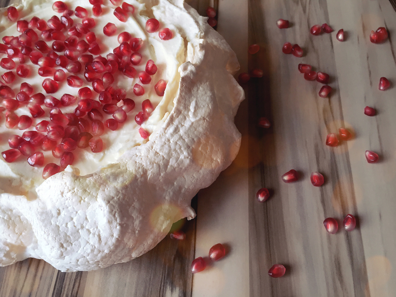 Белки отделить от желтков. Взбить белки до плотной пены. Взбивать, постепенно добавлять сахар, до очень густой массы. Добавить крахмал, уксус и перемешать. Выложить взбитые белки на начерченный круг и сформировать безе. Выпекать 30 минут при 150°C. Оставить остывать в духовке на 2 часа. Смешать сливки, сыр, сахарную пудру и взбить. На готовую основу выложить крем и украсить фруктами. Пара вещей, которые все знают, но на всякий случай. Чтобы белки хорошо взбились, посуда и венички должны быть идеально чистыми и сухими. Белки должны быть комнатной температуры.