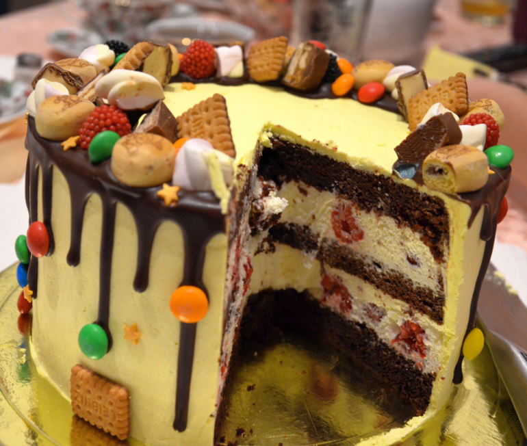Катя, какой аппетитный и аккуратный! Глазурь так красиво легла, как всегда у тебя впрочем. Как M&M, не тают на глазури? И что за крем у тебя такой внутри? А покрыт чем так красиво? Мне тут заказали безмастичный торт из двух разных половинок, так я аж спать перестала. Волнуюсь до ужаса. Все безмастичные, которые до этого делала, мне не по нраву: кремчиз-соленый, ганаш может треснуть. Думаю заварной на шоколаде сделать.