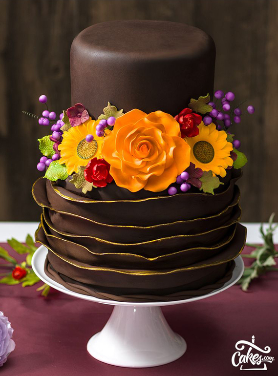 Я предложила как основной цветок - подсолнух. Заказчица была не против. Но вот с моей мамой у меня вышла небольшая дискуссия)) Если сравнивать мой торт и торт взятый за основу, ей больше нравиться второй вариант. А вам какой больше по душе?