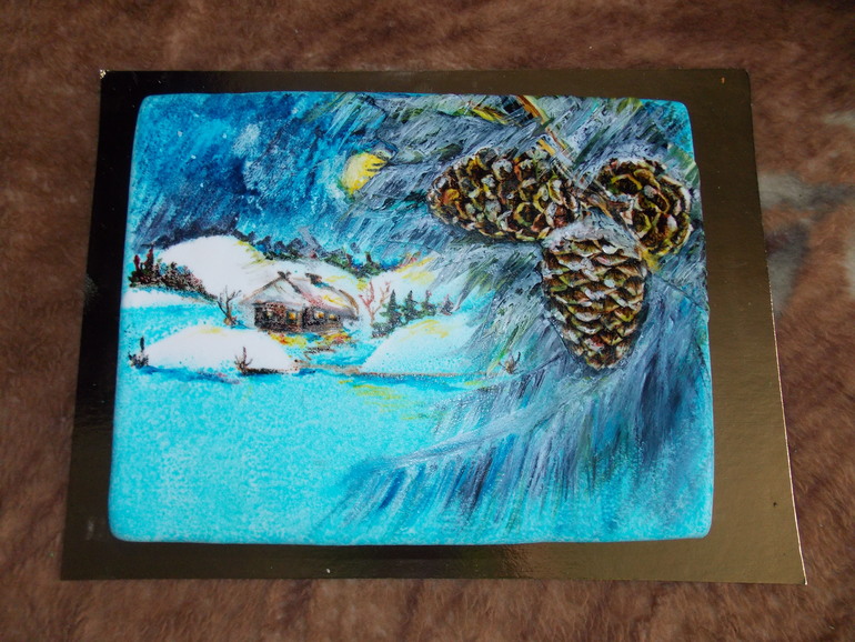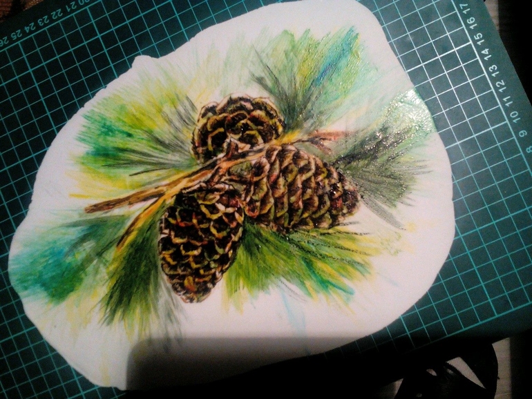 рисовала сама-но шишки рисовала отдельно на мастике-думала просто на торт как аппликацию...показалось скучновато...решила сделать рисунок и шишки в него не вписались....а так хотелось их...вот и впихивала как могла.спасибо -попробую подправить-у меня и с круглыми не очень-а с углами-вообще не сталкивалась еще.