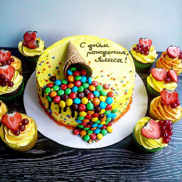 Ярко и очень красиво!! А каким кремом торт покрыт с верху?