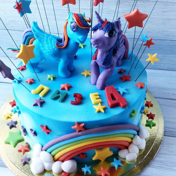 Торты детскиеИскорка и Радуга, ох уж эти пони))) Лепила до 4х утра, и недовольна своей лепкой как всегда))) 3 кг ванильного торта с крем чизом и персиками.