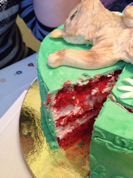 Торт декорирован заварным кремом на белом шоколаде. Начинка красный бархат!