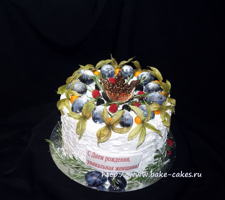 Украшение тортов кремом,шоколадом, фруктами2.500кг "Прага".украшен белковым кремом ,сливами,инжиром,физалисом.