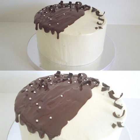 2. ванильный и шок. бисквит, сливки+маскарпоне, черешня.