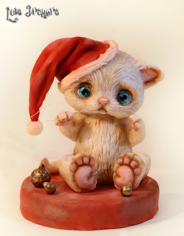 Фигурки и цветы из мастикиСкоро Новый Год, пошла тенденция сахарных скульптур на новогоднюю тематику, все подсели на Снегурочек..) Ну, так как у меня она уже есть, я сделала новогоднего котёнка. Мастика моделпаст, лепка без молдов, высота 10,5 см, внутри съедобная воздушная масса.