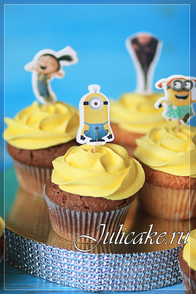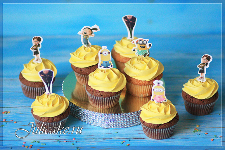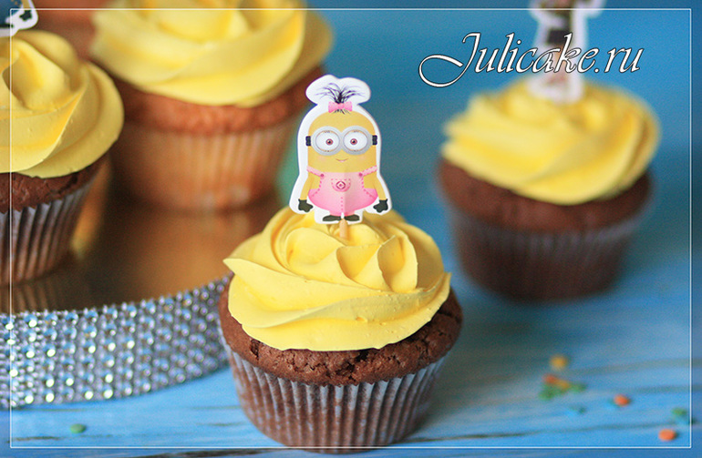 Капкейки Миньоны с бумажными топперами! Шоколадные с темным шоколадом и ванильные с карамелью!