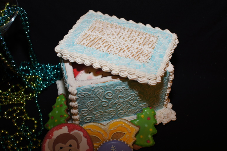 Шкатулки полностью пряничные, наполненные новогодними пряниками. размеры 12х12х18