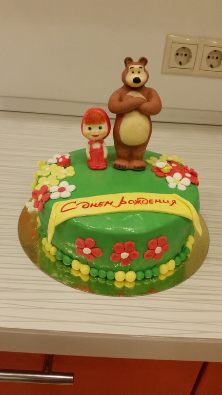 Цветочки тоже понежнее хотелось бы и поменьше размером на торте с Машей и Мишей, рельеф и форму им придать инструментом.