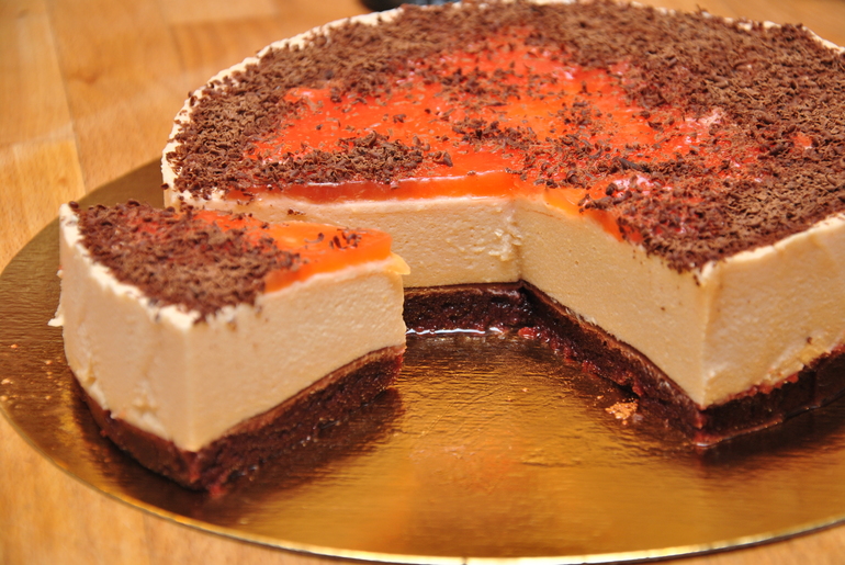 Итак, шоколадный бисквит, апельсиновое суфле, апельсиновое желе