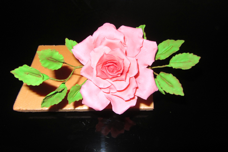 По розе. Очень большая разница в размерах между лепестками в рядах. Не понятно, почему в вас на листиках видно проволоку, ее как раз не должно быть видно, Я бы сильнее оттонировала кончики листьев, чем проволоку в серединке. Очень неплохо, особенно, если вы обучались самостоятельно. (Мой личный совет, когда делаете розу, смотрите на хорошее крупное фото настоящей розы )