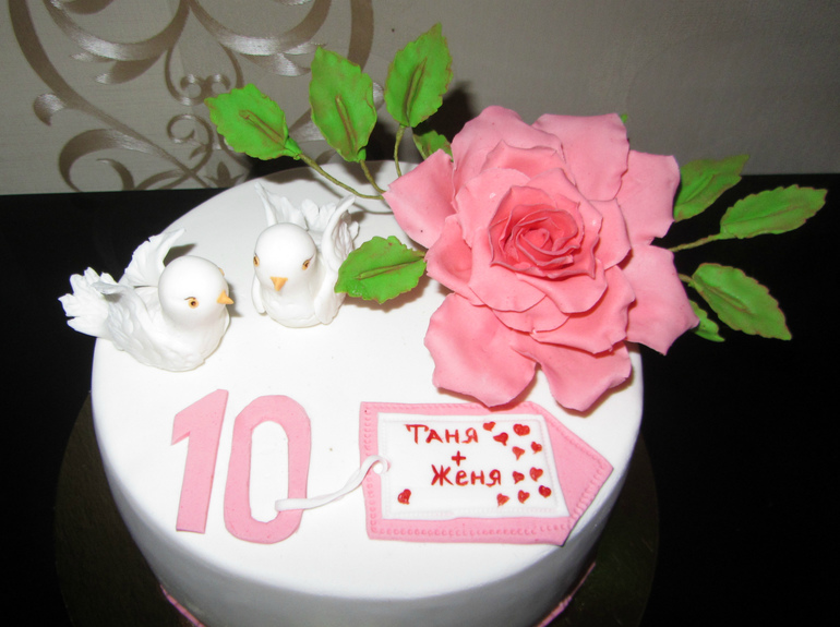 Торты тематическиеМалюсенький тортик на розовую свадьбу, всего 2 кг. Первый раз пыталась сделать розу, на выходе имеем розовую капусту))) Листья отвратительные! Но пока не знаю как сделать лучше(