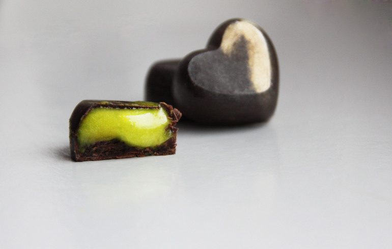 Корпус из темного шоколада, ганаш на тёмном шоколаде и лаймовый курд с добавлением белого шоколада.
